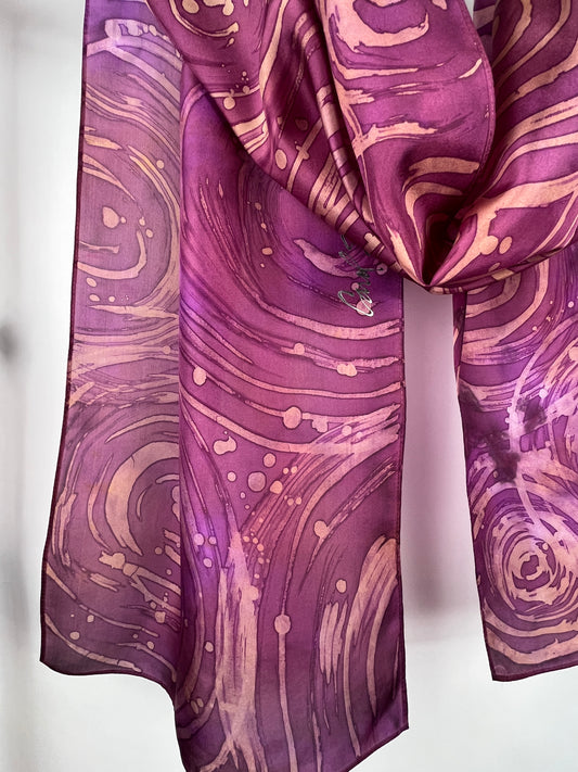 "Merlot Mermaid" - Hand-dyed Silk Scarf - $125