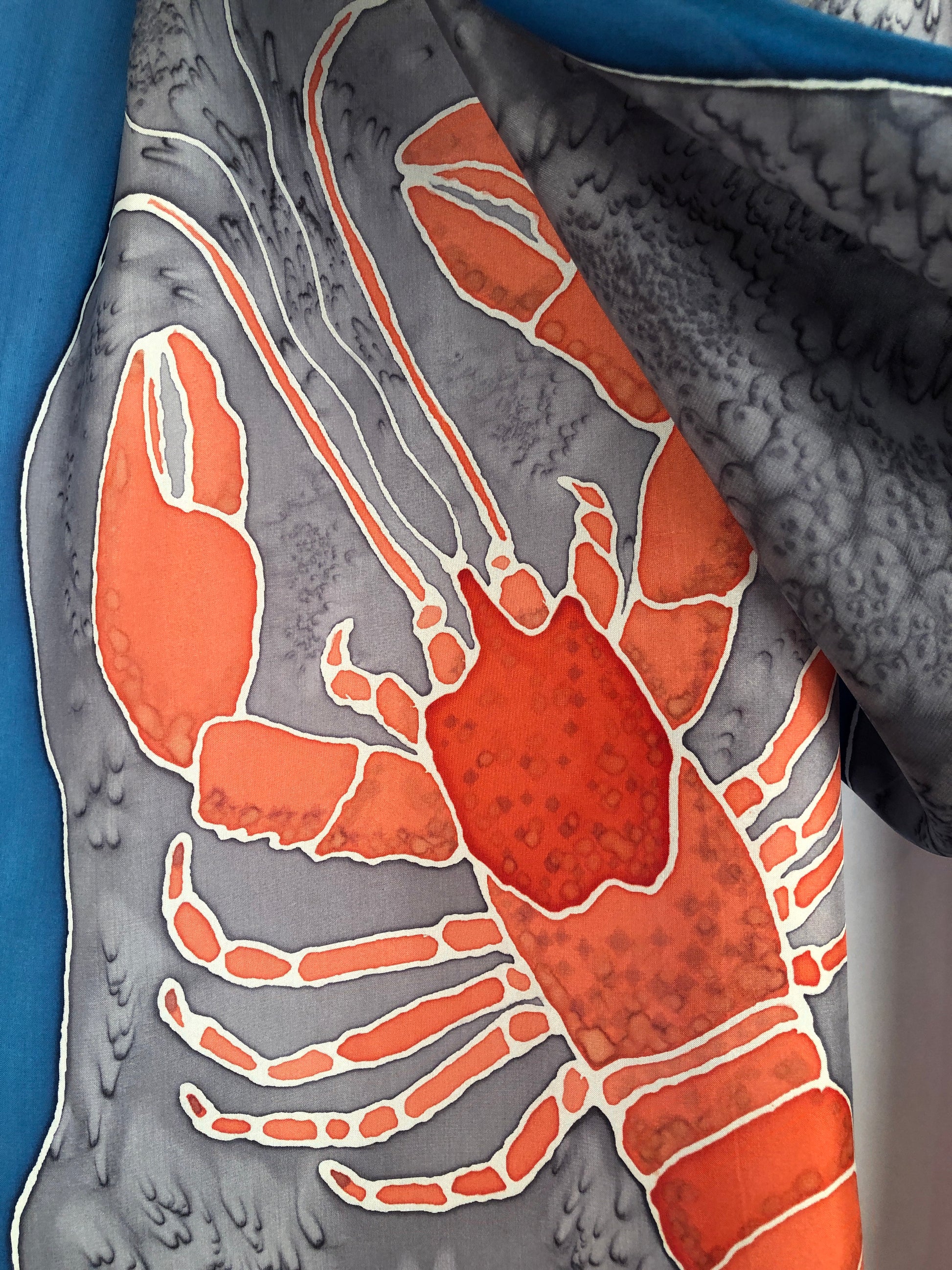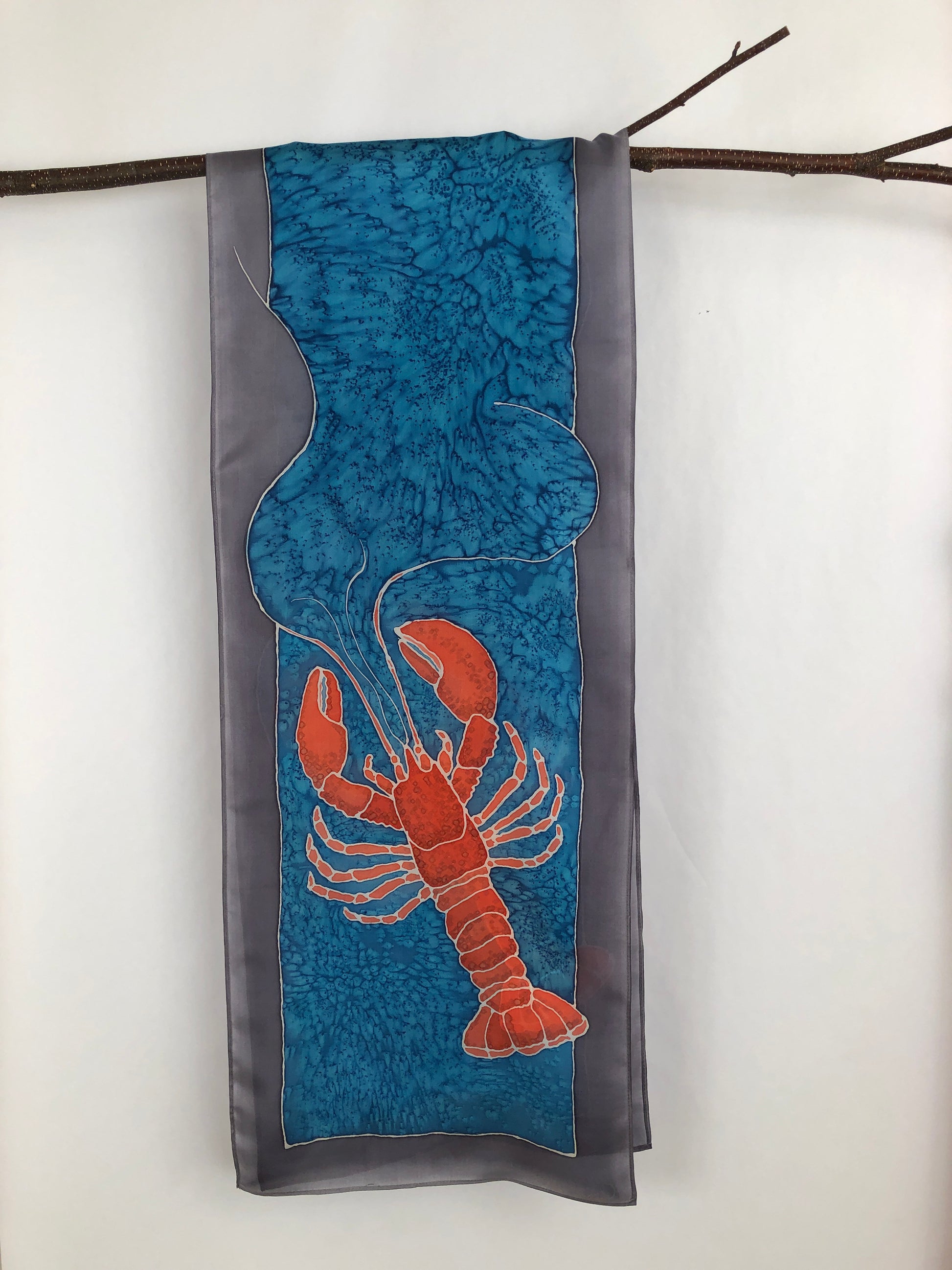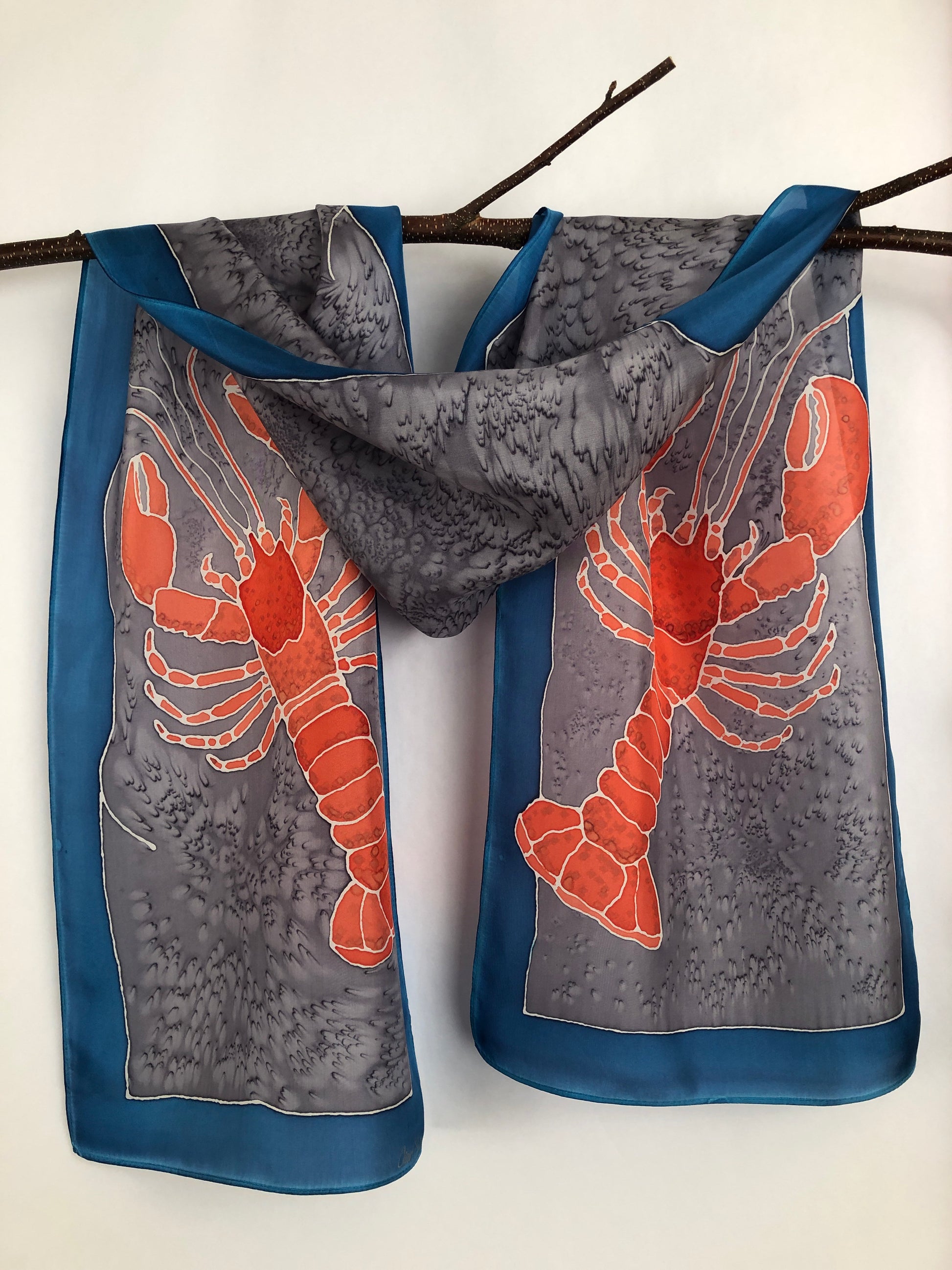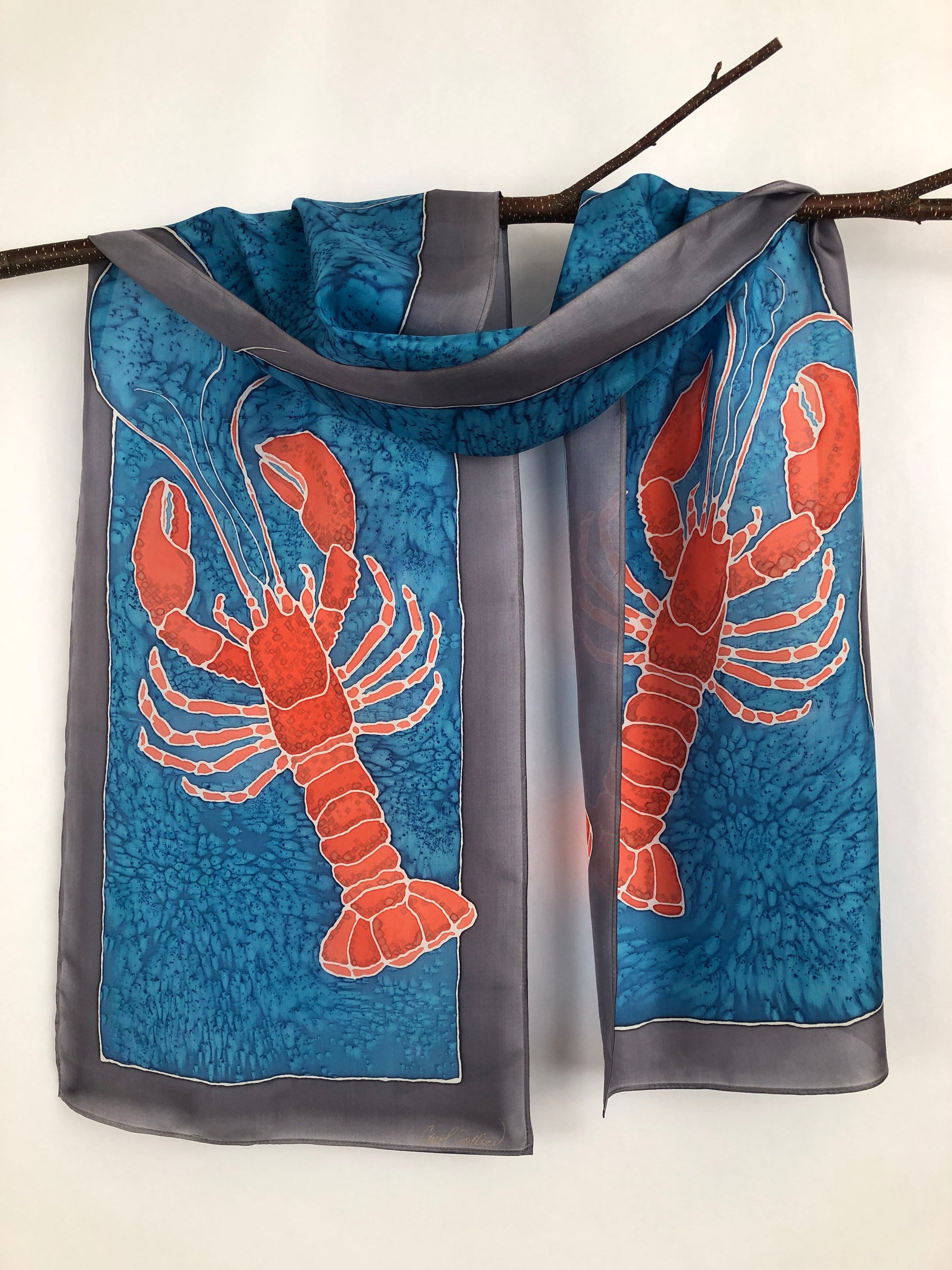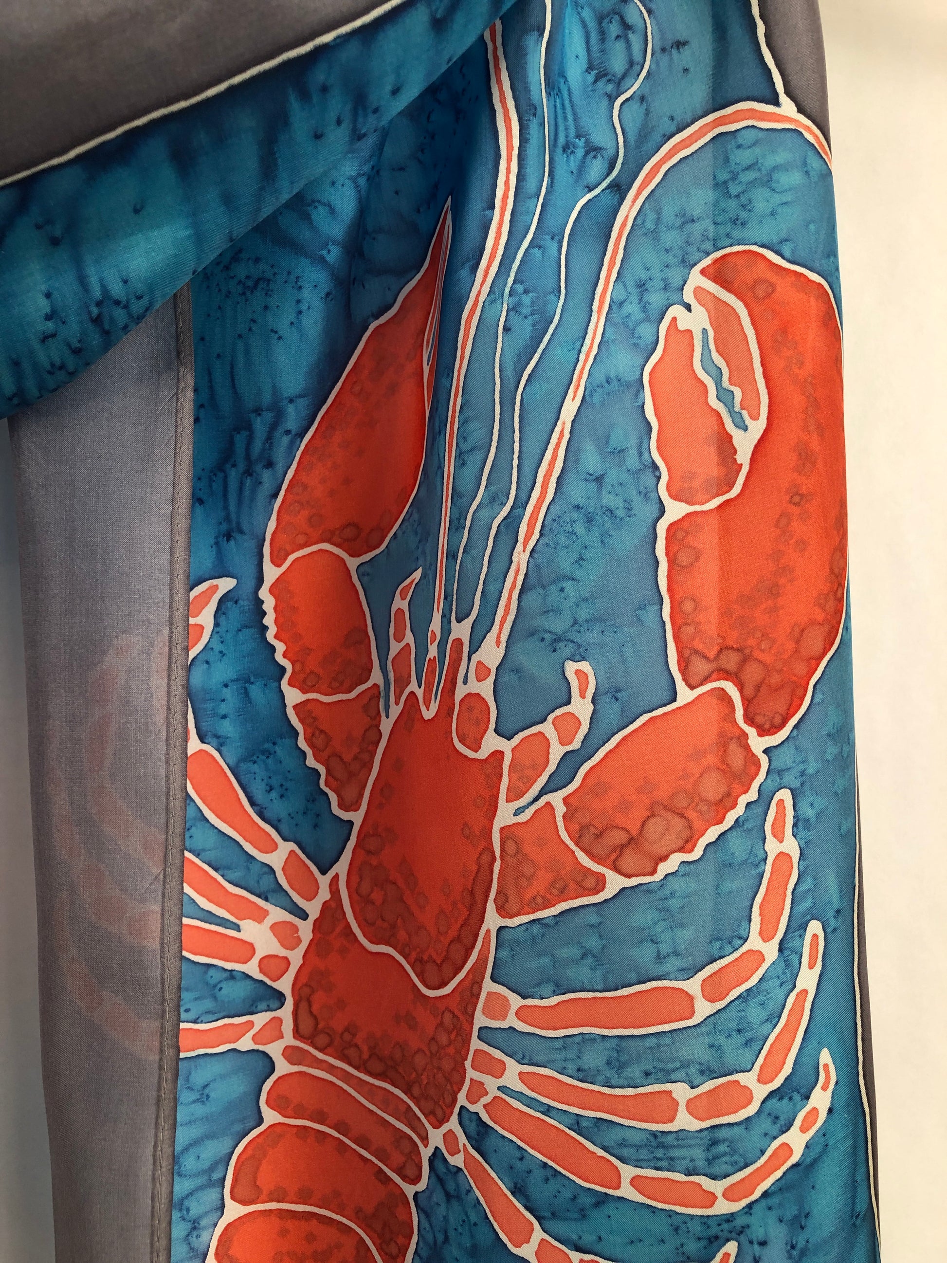 "Love Maine Lobster v1" - Hand-dyed Silk Scarf - $135