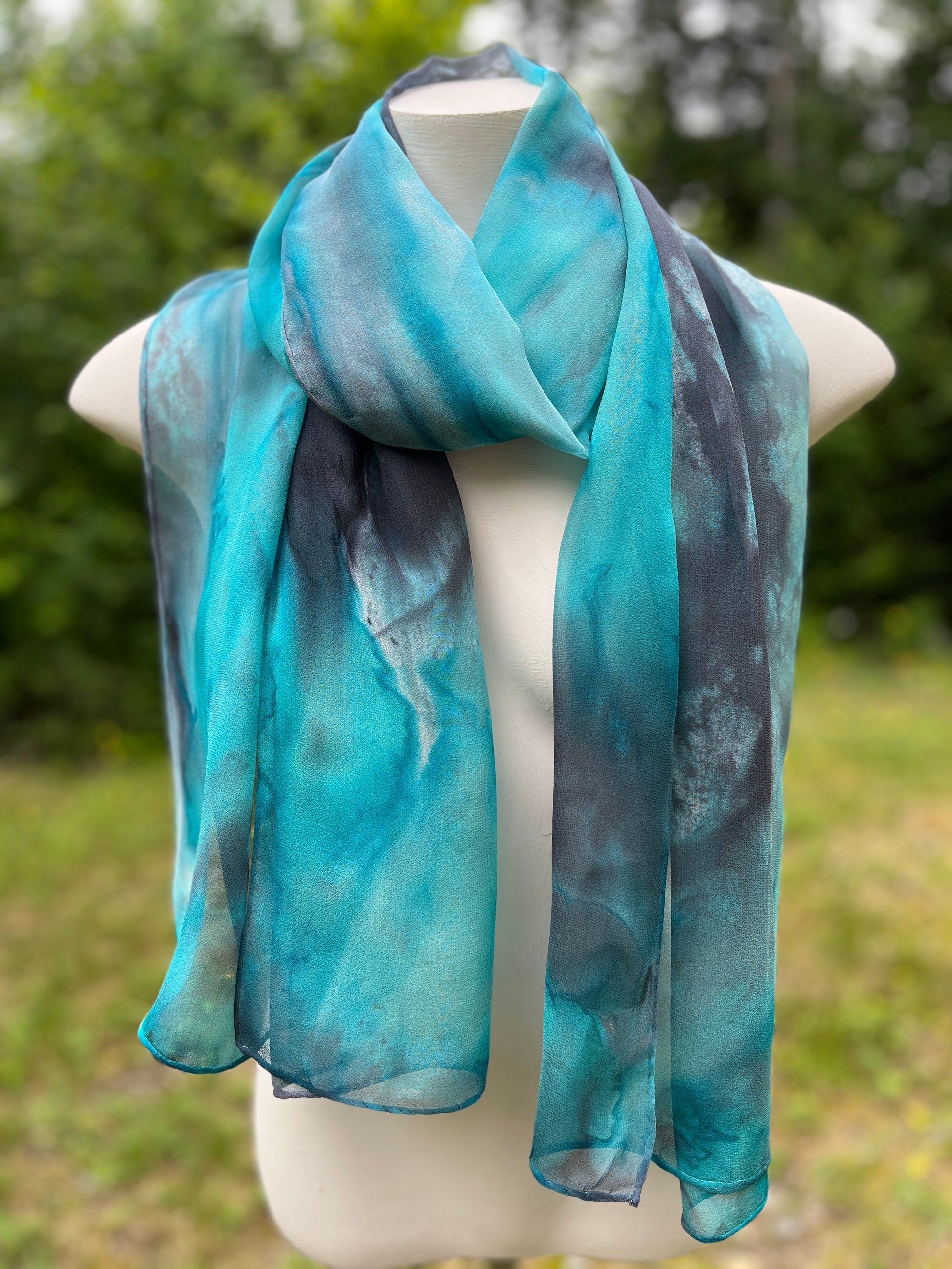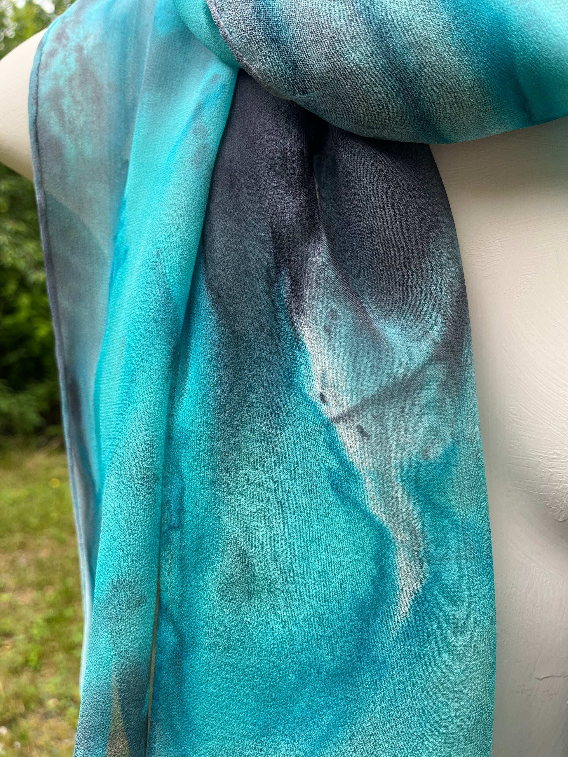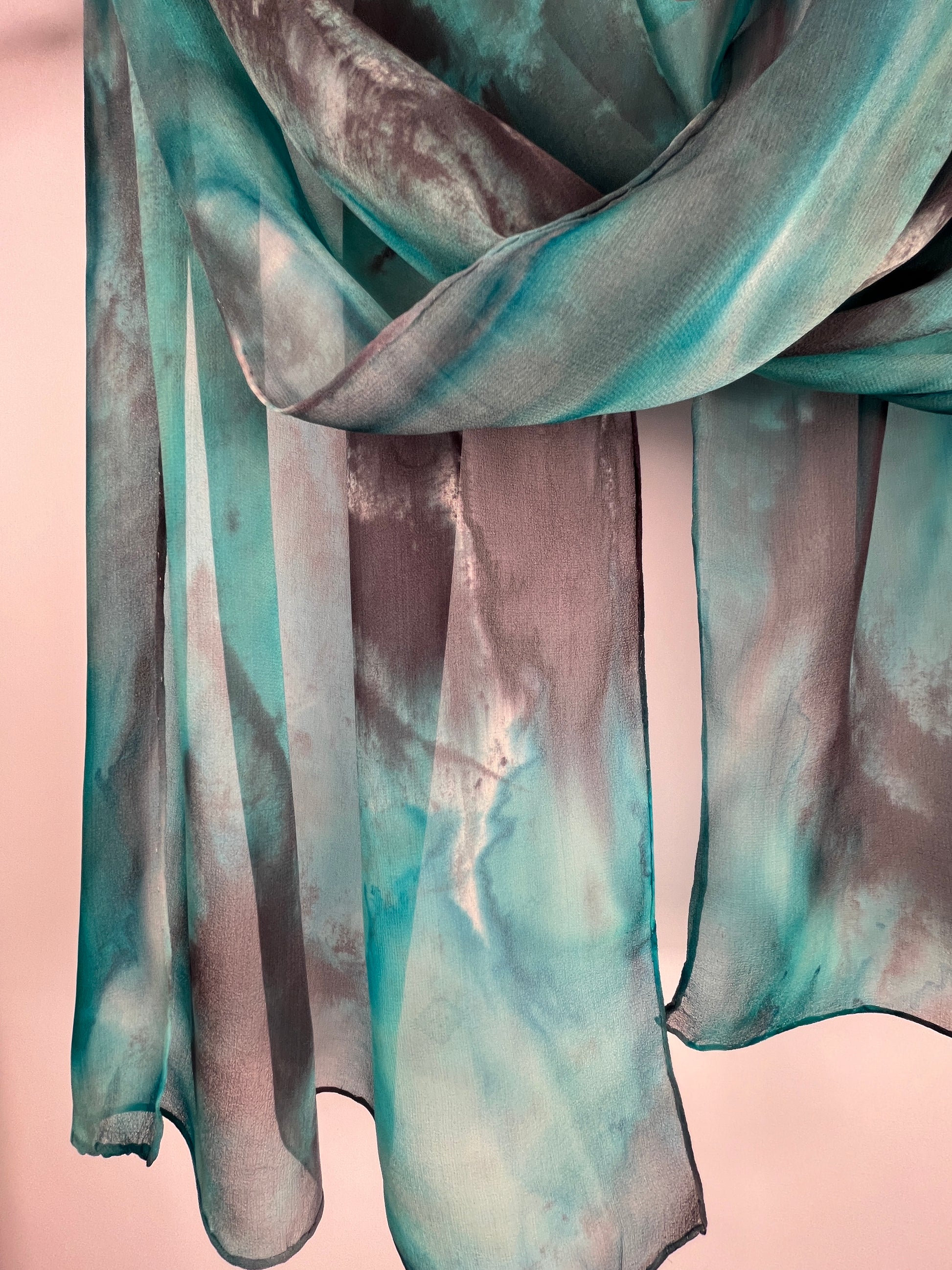 “Turquoise Quarry" - Hand-dyed Silk Scarf - $95